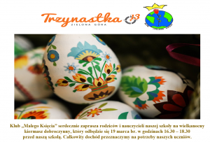 Klub „Małego Księcia” działający przy naszej szkole serdecznie zaprasza rodziców, nauczycieli oraz wszystkich sympatyków szkoły na wielkanocny kiermasz dobroczynny.