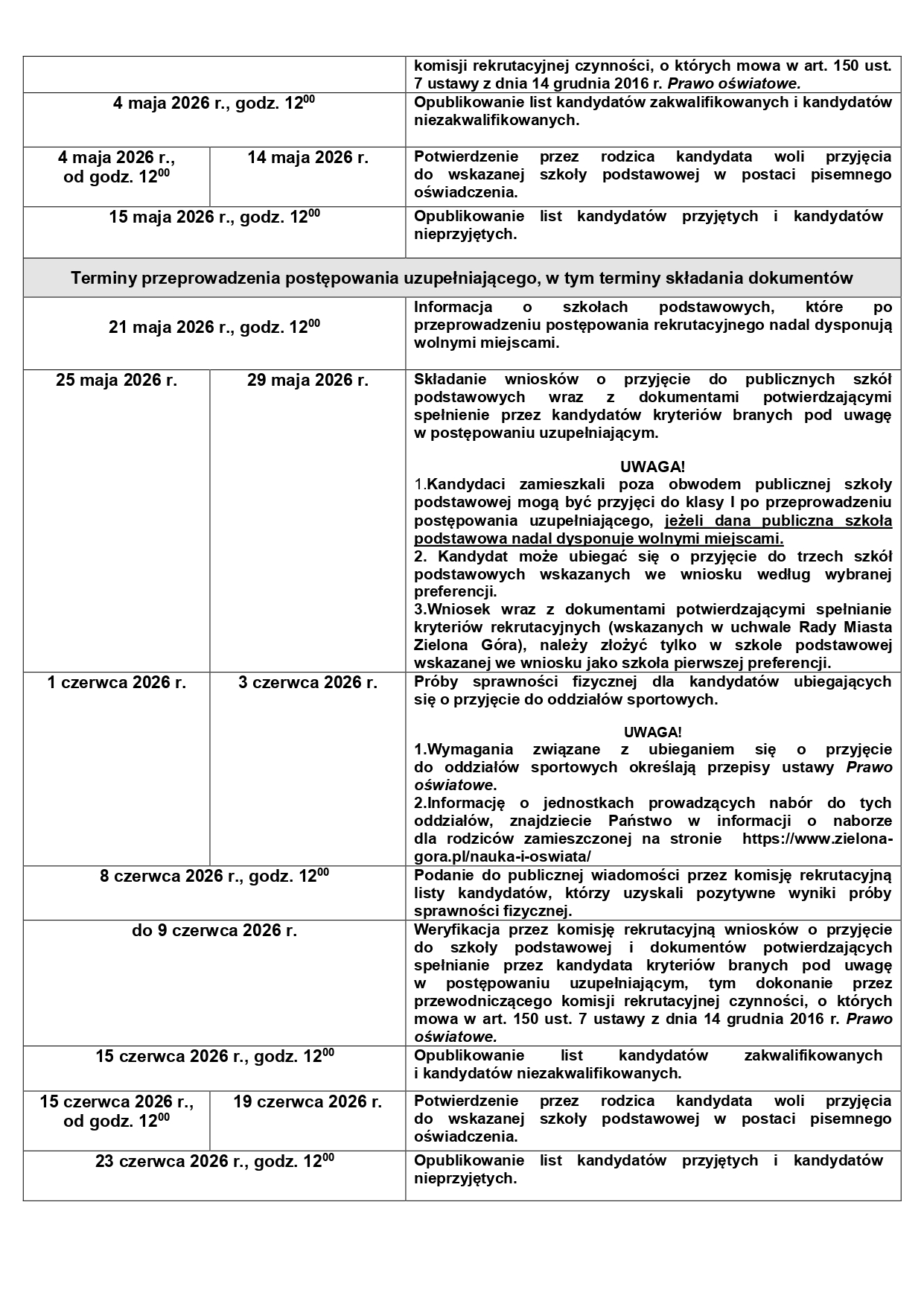 Instrukcja_przesylania_dokumentow Dokumenty dla osób z obwodu szkoły: Zgłoszenie do szkoły podstawowej obwodowej Załącznik do wniosku o przyjęcie do klasy1 Dokumenty dla osób z poza obwodu szkoły: Wniosek o przyjęcie dziecka do szkoły podstawowej na rok szkolny 20262027 1. Wzór oświadczenia – rodzeństwo_2026 2. Wzór oświadczenia – rodzice kandydata_2026 (1) 3. Wzór oświadczenia – uczęszczanie do przedszkola_ 2026 4. Wzór oświadczenia – krewni _ 2026 Załącznik do wniosku o przyjęcie do klasy1